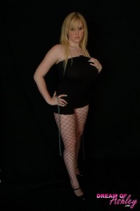 Blonde beauty Ashley Ellison with all natural 36J boobs holding her titties up.