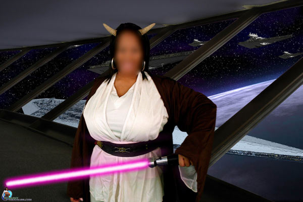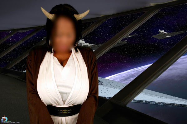 TopHeavyAmateurs show us a new, very interesting idea in their last update from yesterday. Photo set with ebony big boobed model 32K Cheron, dressed as a Jedi and brandishing a light sword. Of course, the power is with her and has two natural mega big bombs, to which she resorts to only in extreme cases! Jedi were able to attract Cheron on their side, if you walk in a weighty manner with black mantle and breathe as an asthmatic, you should know that the dark side is no longer fashionable. 😉