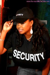 You enter a nightclub, and at the door – a beautiful lady with a black Security t-shirt, hiding two big guns underneath, sweet whispers in your ear that she needs to check for weapons and makes you stretch arms sideways and straddle. You have no choice when Miosotis Claribel is standing against and directed her most powerful weapon at you – natural huge boobs that leave every man speechless and make him surrender. 😉