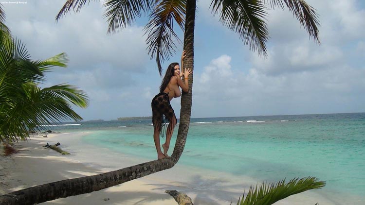 natural boobs gril palm tree photo Ewa Sonnet show her natural tits