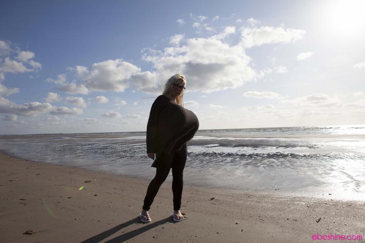 Some information about her official website news: in “Snapshots” check out the new photo set from the North Sea coast “Busty blonde Beshine in Denmark”; in section “Photos” – “Springtime with Beshine and her mega large breasts”, and the new HD video “Springtime, yellow buttercups and heavy monster tits”, from which we show you a short video clip.