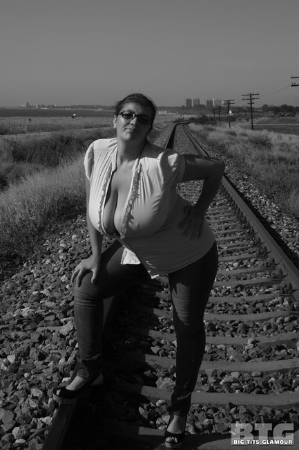 BigTitsGlamour – the site with the greatest concentration of naturally endowed Romanian models on the Internet has released a new update of one of their famous top models Alicia Loren: 33 black&white photos of buxom brunette posing on railway tracks. After the gallery “Traveler” coming update “Intense” with Bianca Bloom and her equally huge bust.