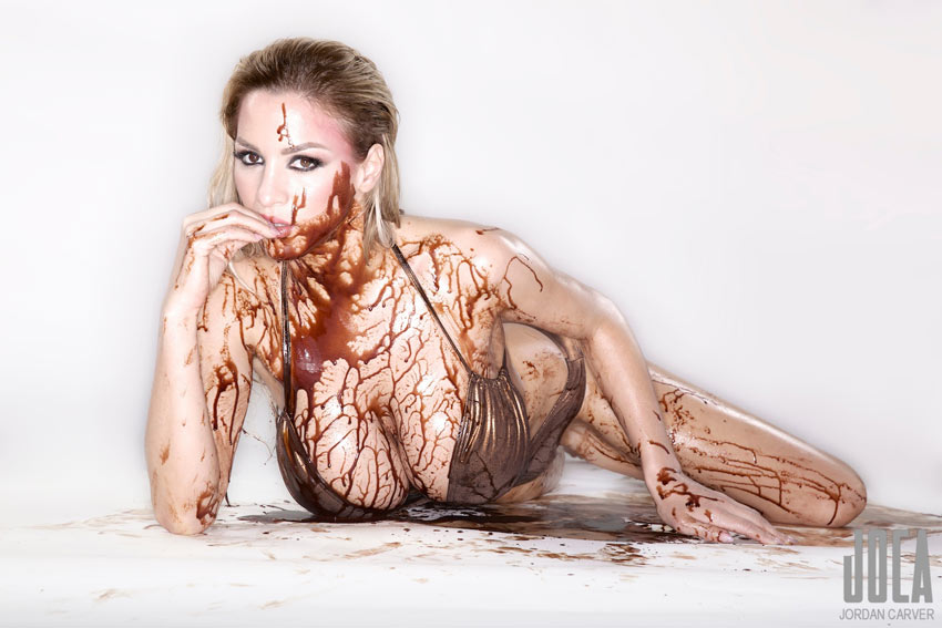 As the white and black chocolate in a MilkyWay jar or just milk with cocoa suits each other, so do and the two latest photo sets Milk & Sugar and Chocolate of fabulous German big-busted model Jordan Carver. We saw all the pics and want to soak up with lips every drop on her divine large boobs.